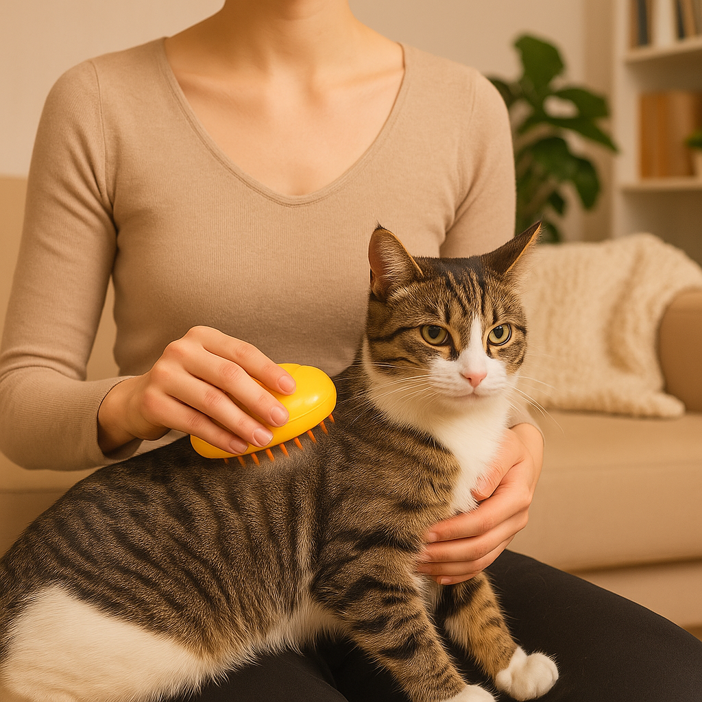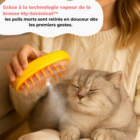 La brosse vapeur My-Sérénicat™ accompagne votre chat tout en douceur durant cette période sensible.